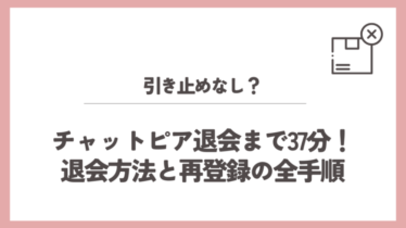 サイト攻略【画像】チャットピア退会は37分で完了!理由テンプレ&復活(再登録)手順も解説 あなた 辞めたいけど、しつこく引き止められたらどうしよう… 一度辞めたら、二度と戻れなくなるのかな? そんな不安を感じて、最後の一歩が踏み出せずにいませんか? ネットで調べると「簡単に辞められる♪」という情報もあれば、逆に...2026.02.24サイト攻略