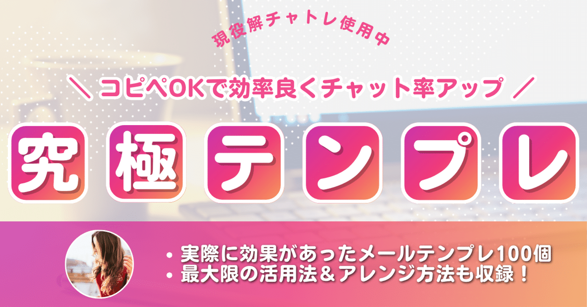 ¥4,980 | ¥4,820 OFF (50% OFF) | 究極テンプレ100個♡現役チャトレREIのメール術!コピペで即効性&ファン化で月収5倍UP | |
