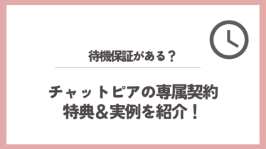 サイト攻略チャットピアに待機保証がある?他のサイトにはない「超優遇」専属契約を解説! チャットピアに待機保証があるか気になりますよね。この記事ではチャットピアでの待機時間を有効活用する方法や効率良く収入をアップする術も公開しているのであわせてご覧ください!2025.02.102026.03.13サイト攻略稼ぐコツ